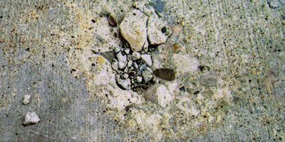 action of weather such as freeze-thaw, wet-dry cycling, and pressure created by expansion within the concrete.